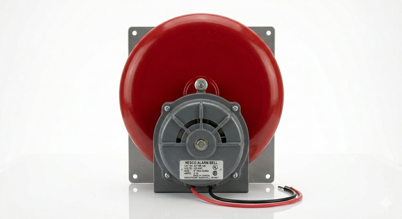The NESCO 437-8R-120 is a professional-grade 8-inch Industrial Alarm Bell, engineered for high-performance emergency signaling and clear auditory notification. Featuring a vibrant red-enameled gong, this vibrating-type bell is specifically designed for fire alarm systems, security alerts, and life-safety applications where immediate attention is required.