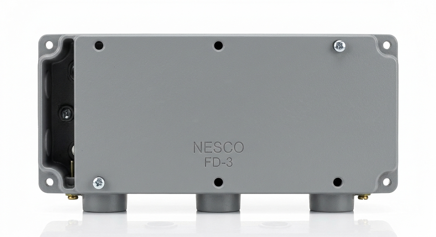The NESCO FD-3 is a heavy-duty Triple Gang (3-Gang) Weatherproof Blank Box, part of the “FD” deep-series family designed for high-capacity electrical junctions and terminations. Engineered for demanding industrial and commercial environments, this box provides a spacious, watertight enclosure for managing complex wiring, housing large splices, or acting as a pull box for conduit runs.