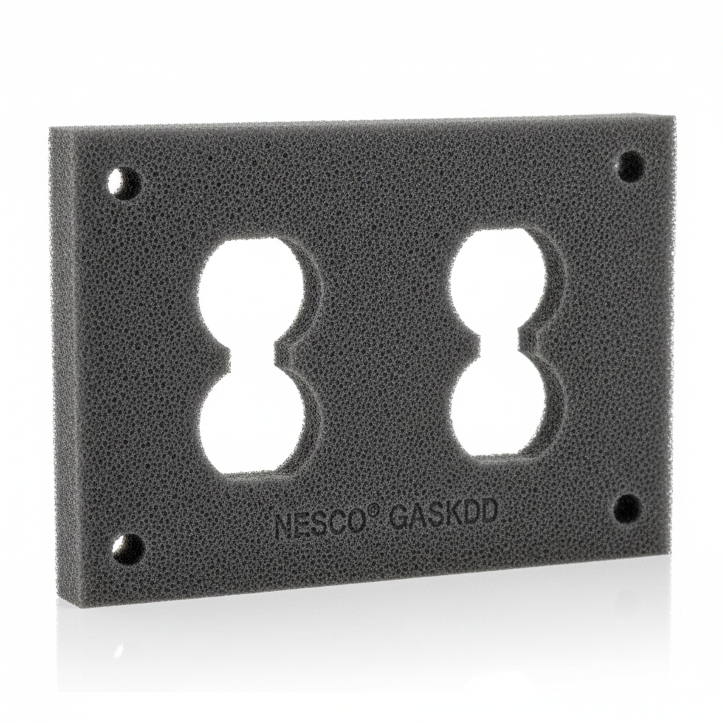 Precision-cut from high-density, closed-cell foam, the GASKDD is resilient enough to compress around surface irregularities, effectively blocking out rain, dust, insects, and humidity. This makes it a critical part of any NEMA-rated outdoor installation, particularly for exterior outlets on patios, commercial facades, or industrial sites.