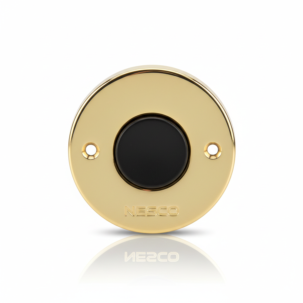 The NESCO PB-303 is a compact, premium Solid Brass Unlighted Push Button, offering a sophisticated and durable solution for residential or commercial signaling. This model features a 1-3/4″ diameter circular faceplate, providing a slightly more streamlined profile than the larger PB-302, making it ideal for narrower door frames or mounting surfaces where space is a consideration.