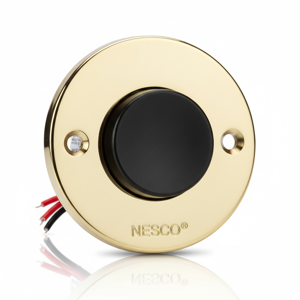 The NESCO PB-304 is a high-performance Solid Brass Unlighted Weatherproof Push Button, specifically engineered for exterior environments where exposure to rain, humidity, and temperature fluctuations is constant. Combining the timeless elegance of a polished brass faceplate with industrial-grade sealing, this model is the premier choice for coastal homes, garden gates, and exposed commercial entryways.