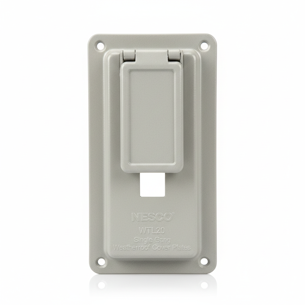 The NESCO WTL20 is a heavy-duty Single Gang Weatherproof Cover Plate specifically designed to provide environmental protection for 20A lever or toggle switches. Precision-crafted from die-cast metal and finished with a weather-resistant gray powder coating, this cover is built to withstand the rigors of industrial sites, commercial exteriors, and residential utility areas.